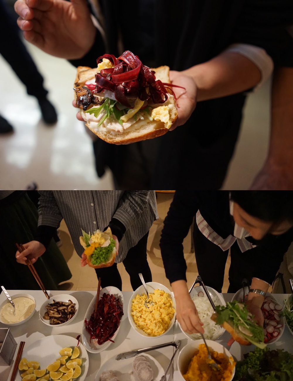 D&Department 社内勉強会でお話をさせていただいた。聞き手は、相馬さん。勉強会の後に、神山の食材を使ったセルフサンドイッチをみんなで食べる。シンプルだけど、自分で仕上げて、みんなで食べるのは、あらかじめ用意されすぎたものより色々伝わると思う。