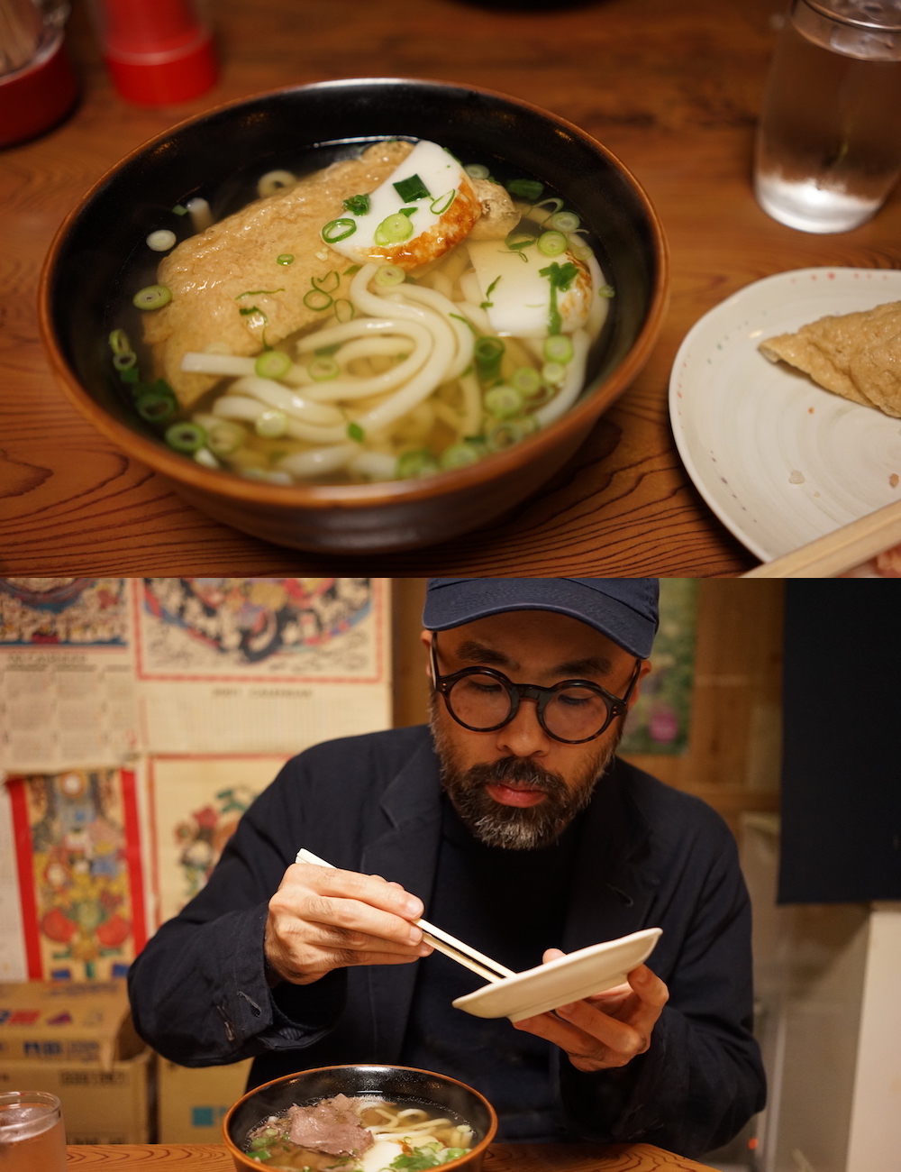 神山から東京を経由(?)し、その夜、尾道に移動。石橋さんは、Food Hub Projectを一緒に立ち上げてきた、と言っても過言ではない存在。尾道のプロジェクトでまた彼と仕事をできるのがうれしい。ちなみに、このうどん屋さんは呑んだ後、深夜に行く感じのお店で、大きめのおいなりさんが好き。