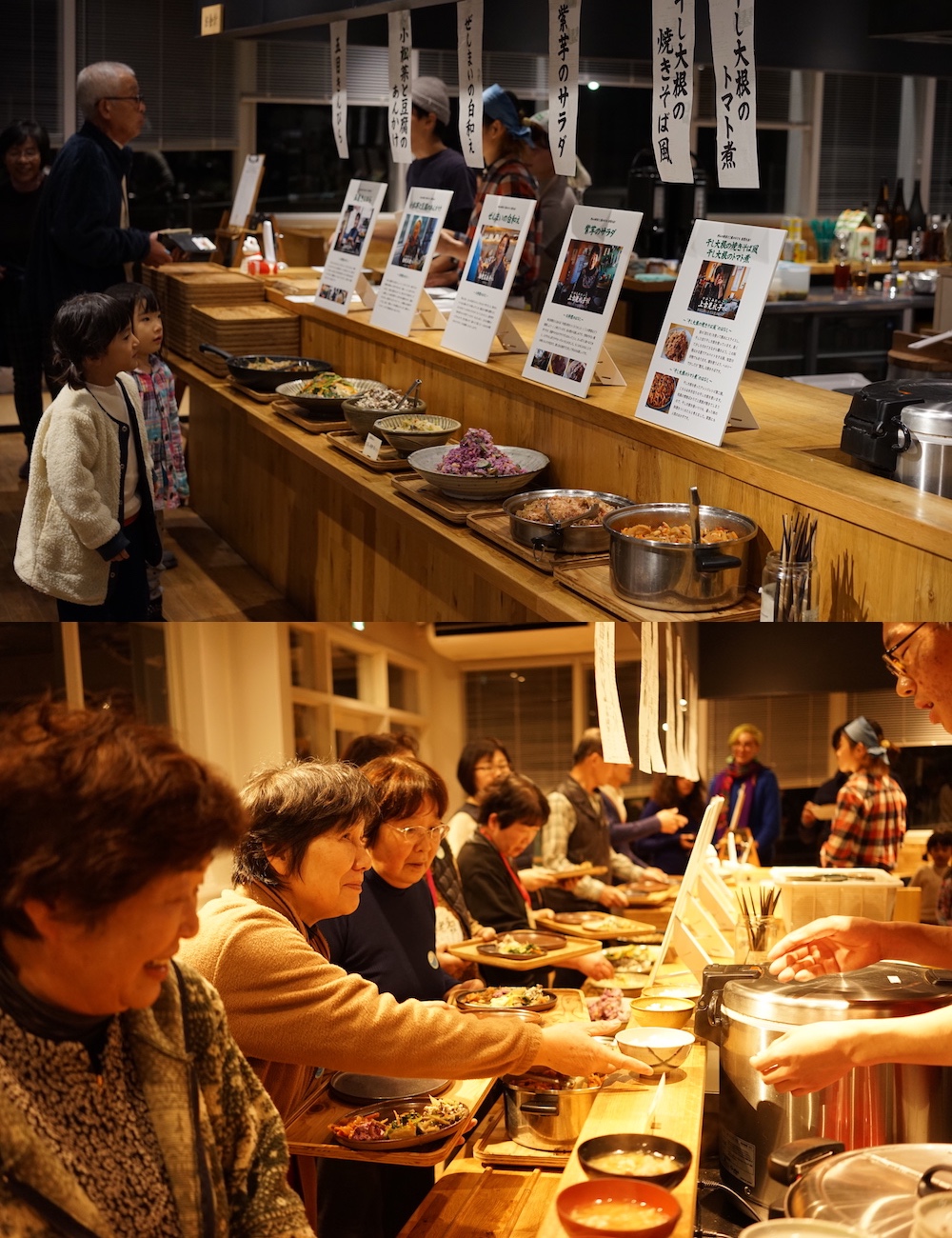 「神山の味」を次につないでいくプロジェクトとして、地元のお母さんたち9人に、13品のご飯のおともを作ってもらってみんなで食べた。ご飯も私たちが育てたお米の食べ比べ。なによりも、今回お世話になったお母さんたちが誇らしげだったのが嬉しかった。