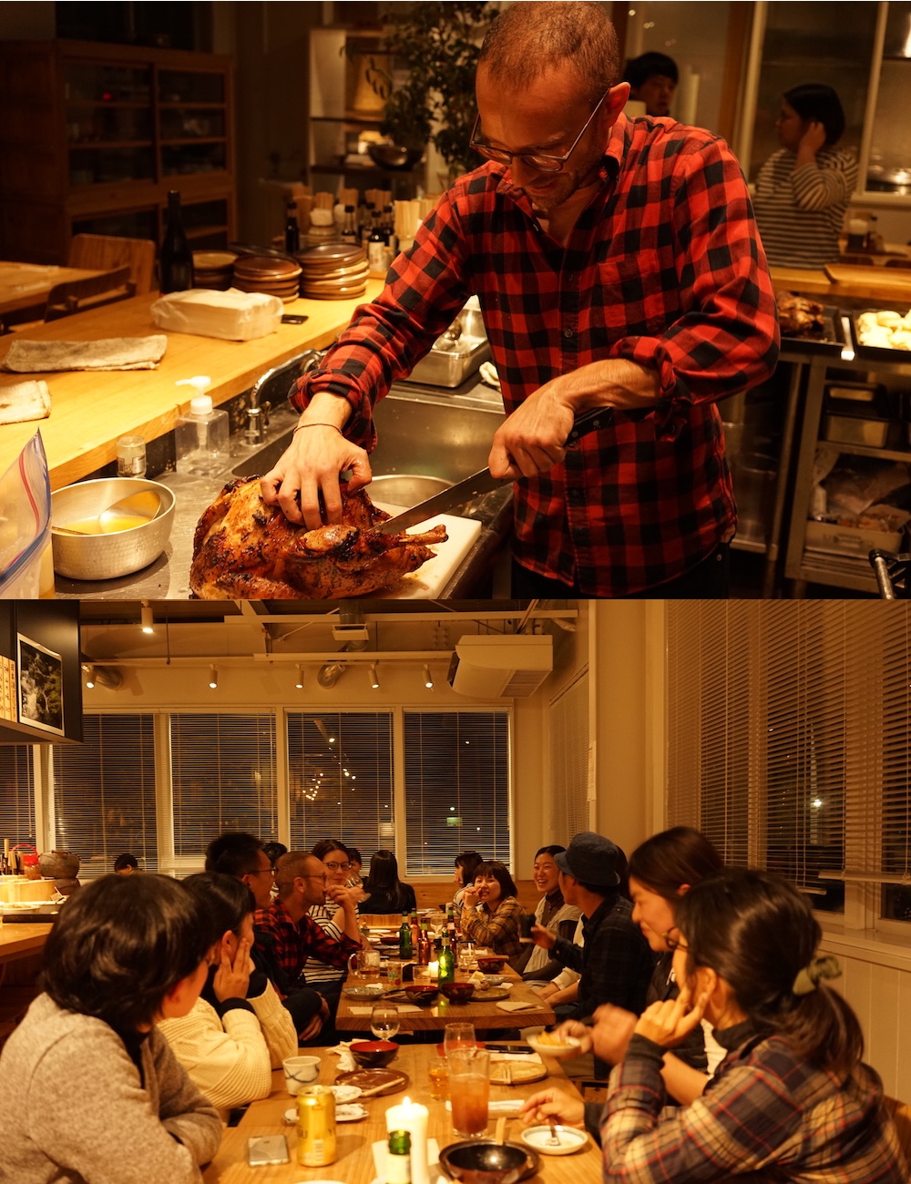 シェフ・イン・レジデンスで長期滞在中のデイブが、Food Hub Projectのメンバーみんなのために七面鳥を仕入れたいといい出したのが一週間程前。料理長の細井が、高知の知り合いから教えてもらって上質の鳥を仕入れてくれた。彼の調理法はワイルドだが、味は繊細。全員食べ過ぎたと思う。働くメンバーも増え責任も大きいけど、つくり手たちとこういった語らいの時間を持てるのは、この上ない幸せ。