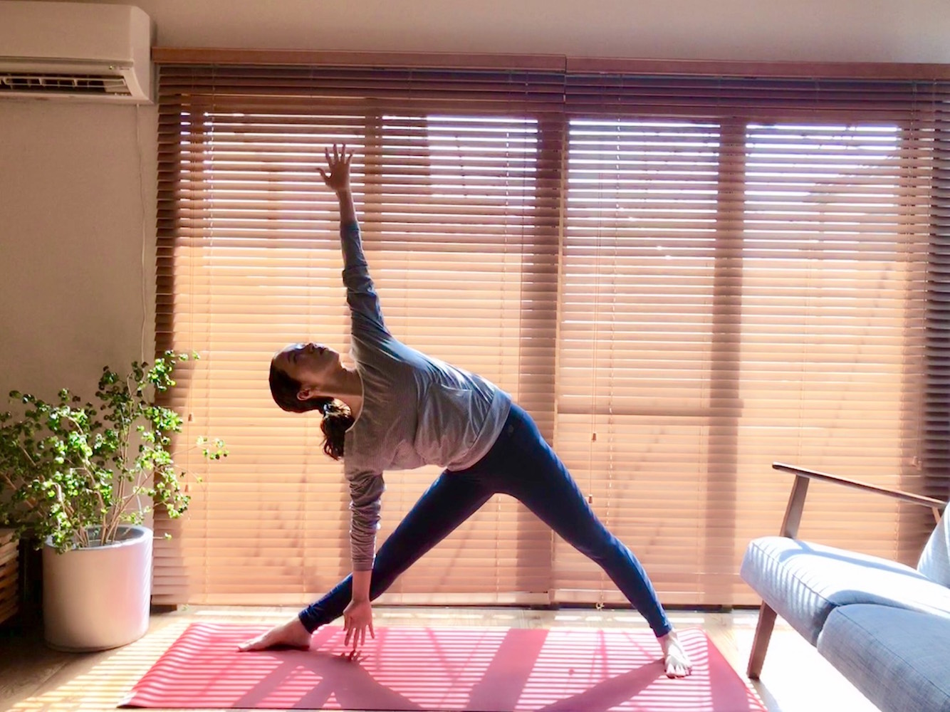 トリコナアーサナで隅々までエネルギーを巡らせると、生き生きと1日を過ごすことができます。