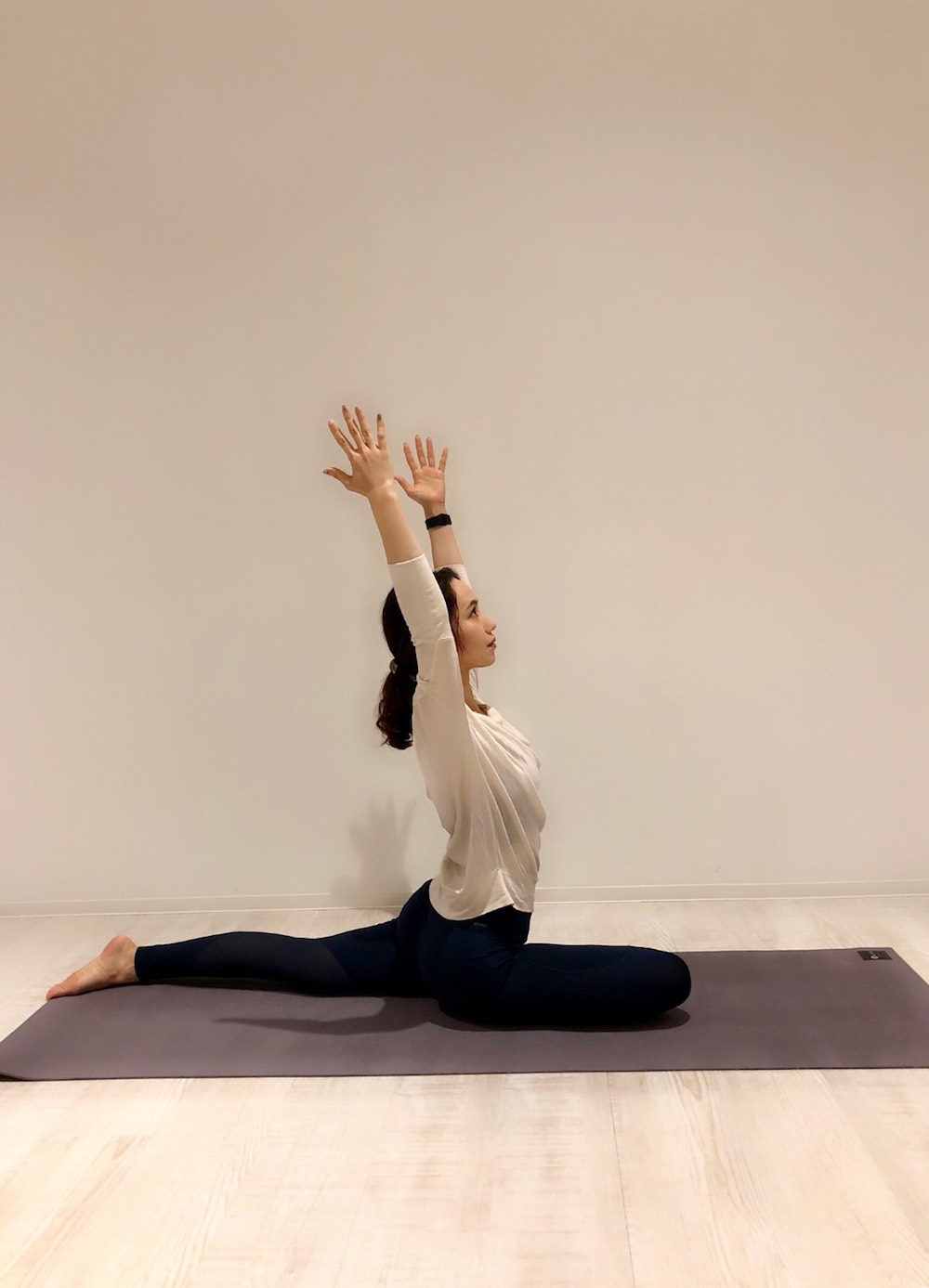 肩や胸が開かれる気持ち良さを感じながらバランスを取っていくこのポーズは、その日の体調が分かりやすくてよく行います。