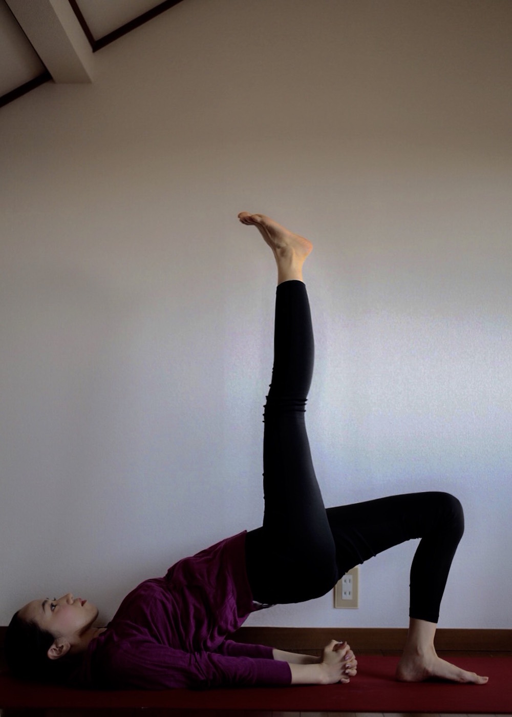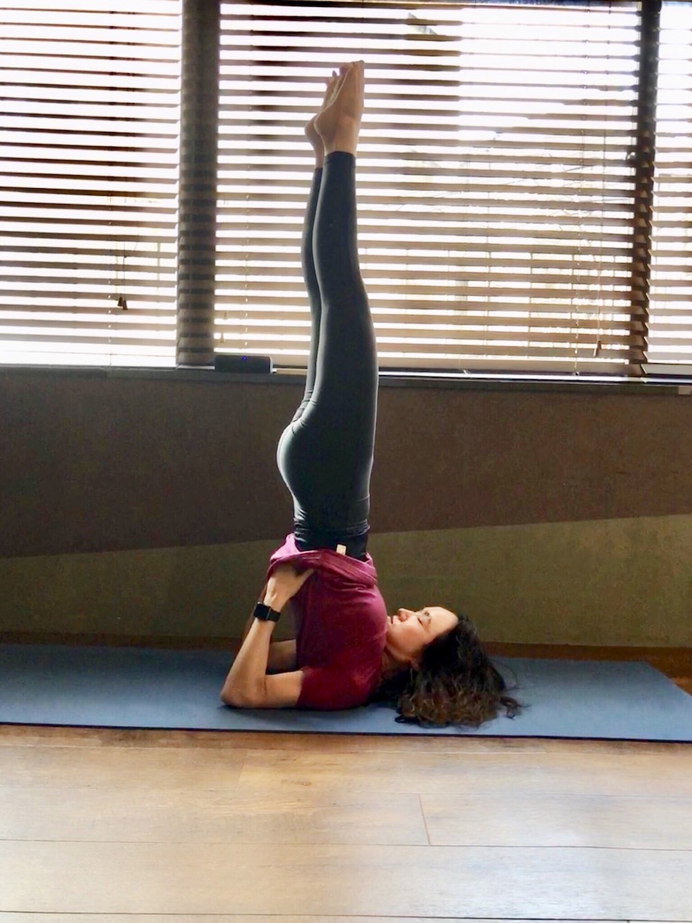 クラスの後半に行ったショルダースタンドをレッスン後にひとりでも行ってポカポカに。