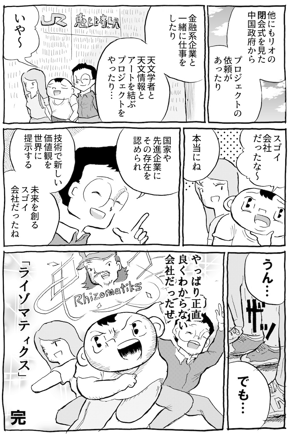 ライゾマティクス事務所へ。体はオトナ、心はコドモな“クリエイター”たちが、世界を驚かす実験をしている秘密基地。ワクワクが止まりませんでした。さまざまな専門分野のプロたちが、ざまざまなプロジェクトを通じてモノ、コト、場所と関係し合いあらゆる方向に複雑に増殖していく。ここなら何でも創れます。そんな気にさせてくれる場所でした。ちなみに僕はノッチ推しです(笑)。