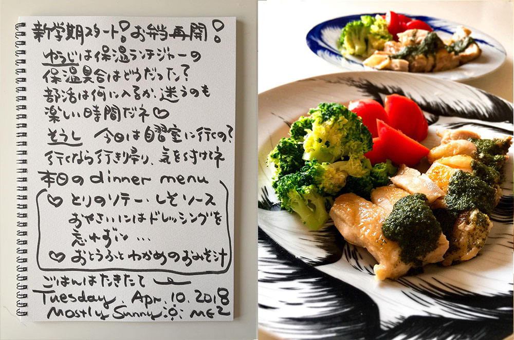 すごくおいしそうで、お子様がうらやましい。働くママとして「凄い」を通り越して、感動すら覚えています。お料理の素晴らしさや、華麗な筆ペンさばきは、もちろん、お子様への愛情(旦那さんへも)たっぷりな姿を拝見していると、もし、もう一度生き直すことが出来るなら、中学校からやり直したい。それもMEMEさんのようなお母さんの元で!なんて思っている方、多いことでしょう。