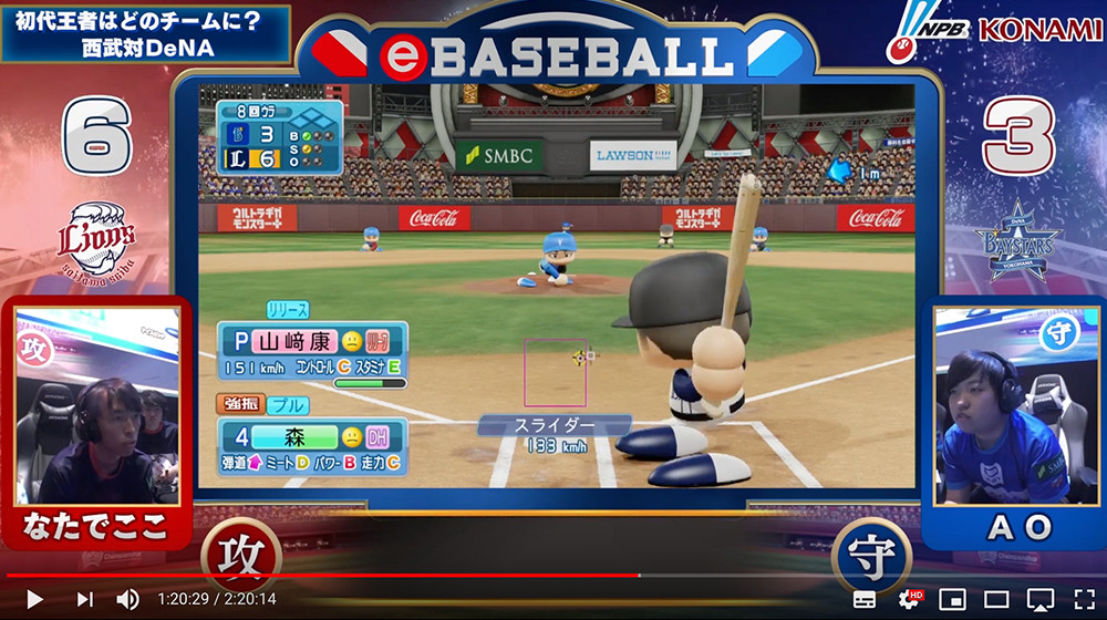 共催のきっかけは、プロ野球ファンの裾野を広げたいという要望からでした。実際のプロ野球ファンというのは30歳以上と年齢層が高い傾向にあり、若い層へのリーチを起こしたいというNPBさん側の思いと、若いファン層を獲得しているビデオゲームとの親和性が高かったのだと思います。メーカーとしても、もう一つのプロ野球を見せたい、という思いがあったので、リアリティのあるレギュレーションには細部までこだわりました。eBASEBALLの楽しさを通して、プロ野球って面白いね、今度リアルなプロ野球を見てみようかな、という若い層のプロ野球への興味を促し、一方で、ゲーム未体験者に対しても、視聴の楽しさから自分もパワプロをやってみようかな、とゲームにも興味を持ってもらえる。昨年11月に開催された開幕戦は、大いに盛り上がりましたね。全12球団のプロ野球eスポーツ選手が一堂に会し、実況にはプロのアナウンサー、解説にはプロ野球OBで解説者の真中満さんや谷繁元信さんらに参加いただき、プロ野球の新たな魅力を体験する場となりました」