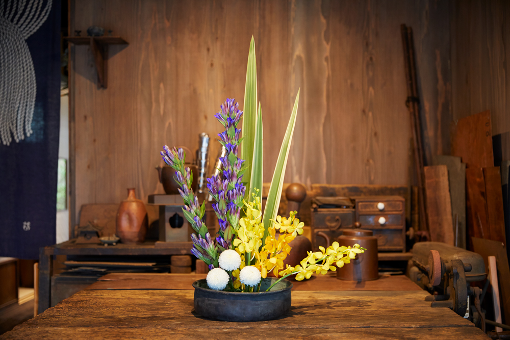 当日、会場に飾られたお花。映画『歩いても 歩いても』で主人公の母役を演じた樹木希林さんがいけた設定のお花を、三ツ松さんが再現してくださいました。