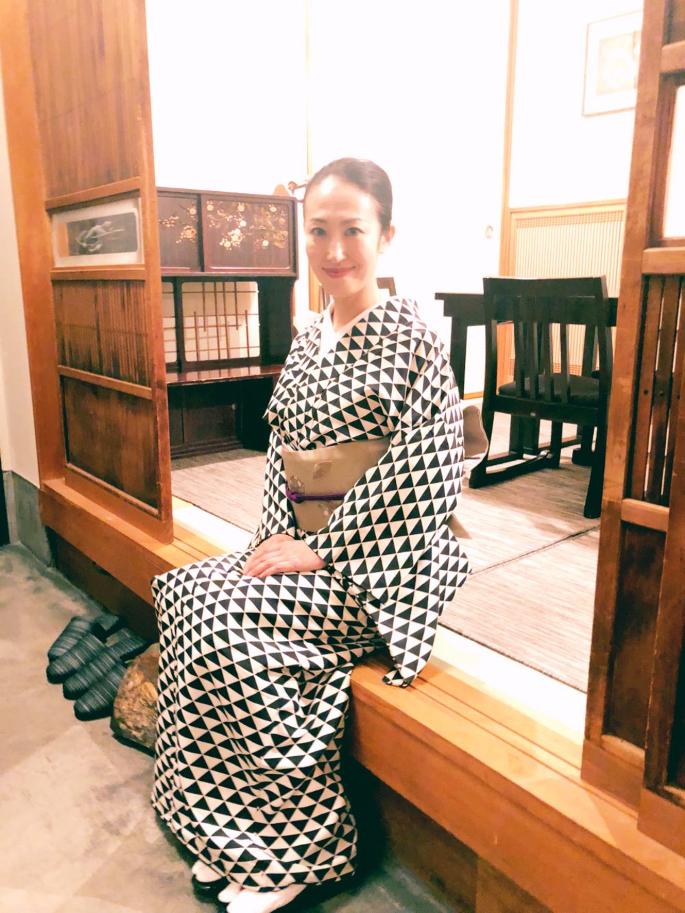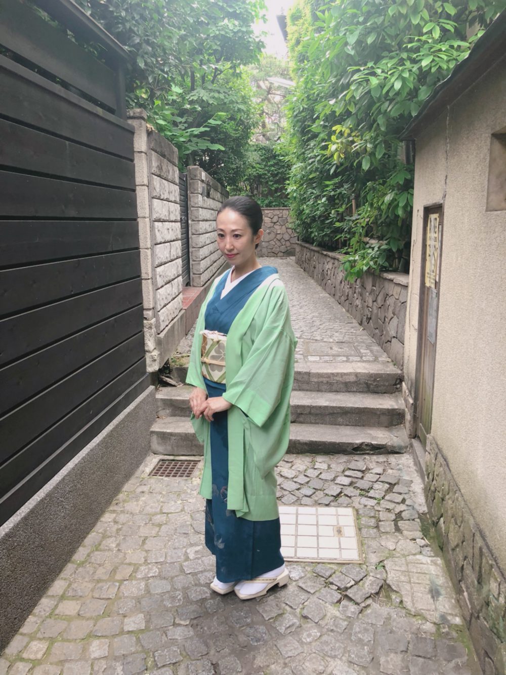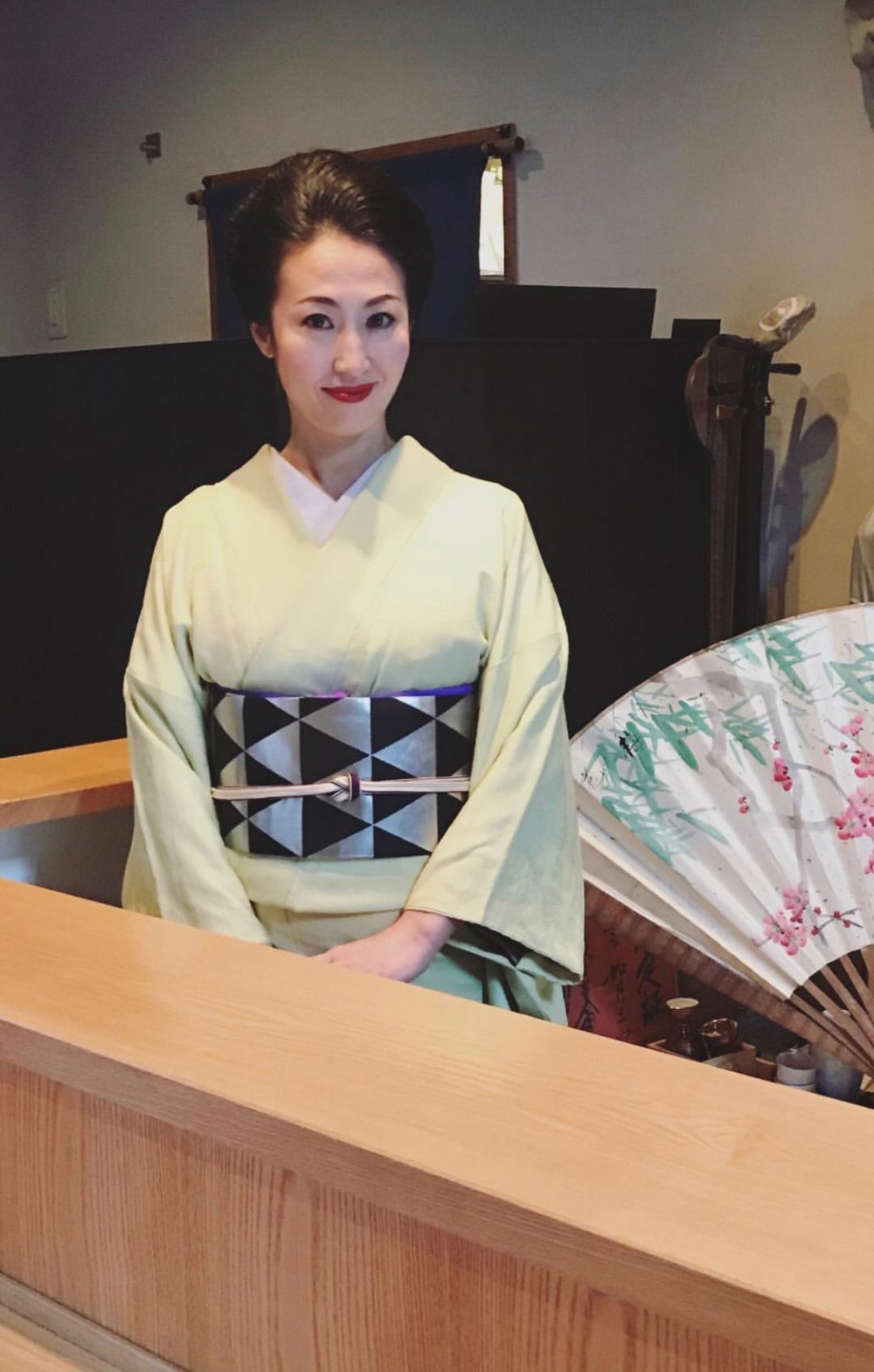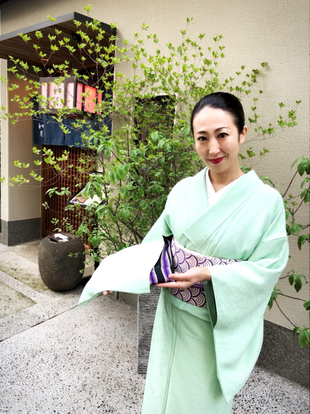 月曜日に発売の週刊ポストに[美人女将が迎える小料理店]とモノクロページで紹介していただきました。その時のコーディネートがこちらです。モノクロでは着物の色は写りませんが、身につける色で、顔映り、心に与える作用も変わってくると思うので、女優さんタレントさんにスタイリングをして差し上げる際も、色選びを大事にコーディネートしています。私はよく無地を好んで着ていますが、持っている中でも特に気に入っている鶸色(ひわいろ)に、鱗柄の帯のコーディネートです。