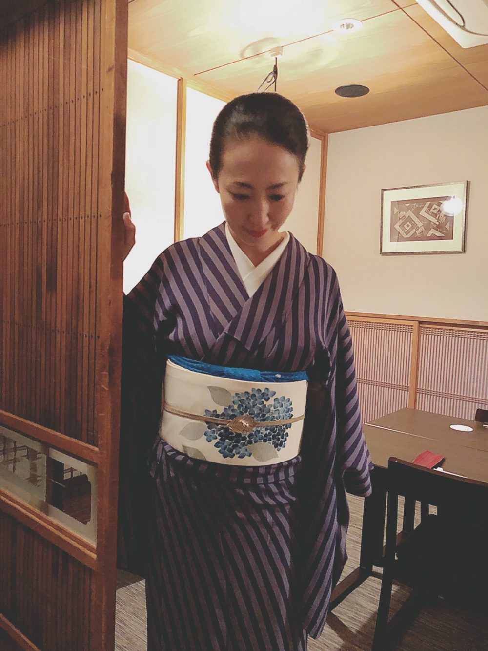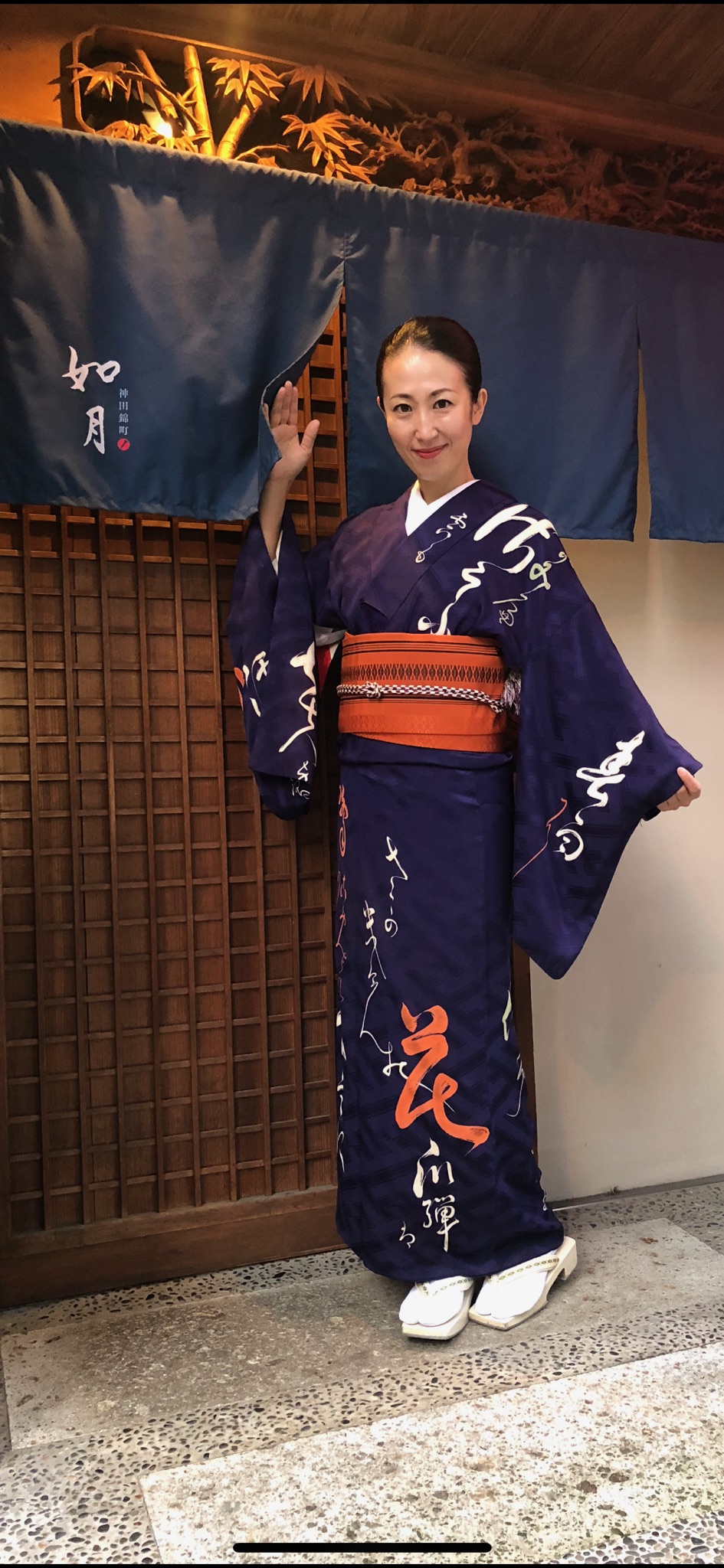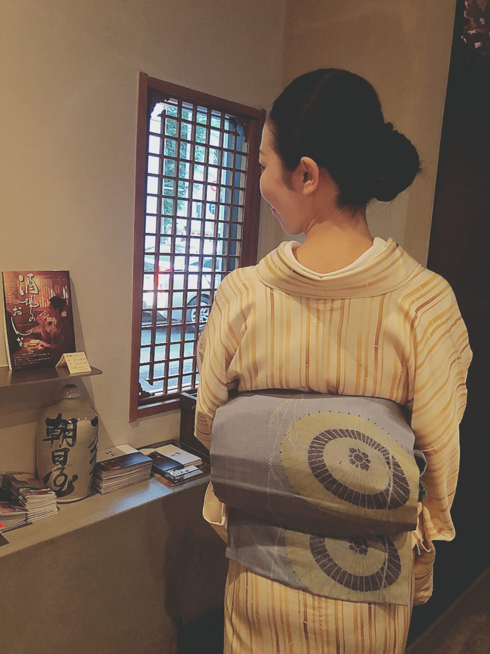 6月で私が女将をつとめる神田錦町如月が3周年を迎えるのですが、その記念のお酒のオリジナルラベルの撮影をしました。私の書籍「酒場のおんな」の共著者yOUが撮ってくれました。着物の八掛けには「お酒飲む人花ならつぼみ 今日もさけさけ 明日もさけ」という都々逸を染めております。この文字は友人で書家のMAAYA Wakasugi が書いてくれました。(最近ではNHK大河ドラマの直虎の文字を書いたりフランスでも活躍中)長襦袢は紗綾形、帯は源氏香と、自分の好きな柄をたくさん身に纏い、気分上げ上げであっという間に撮影は終了しました。