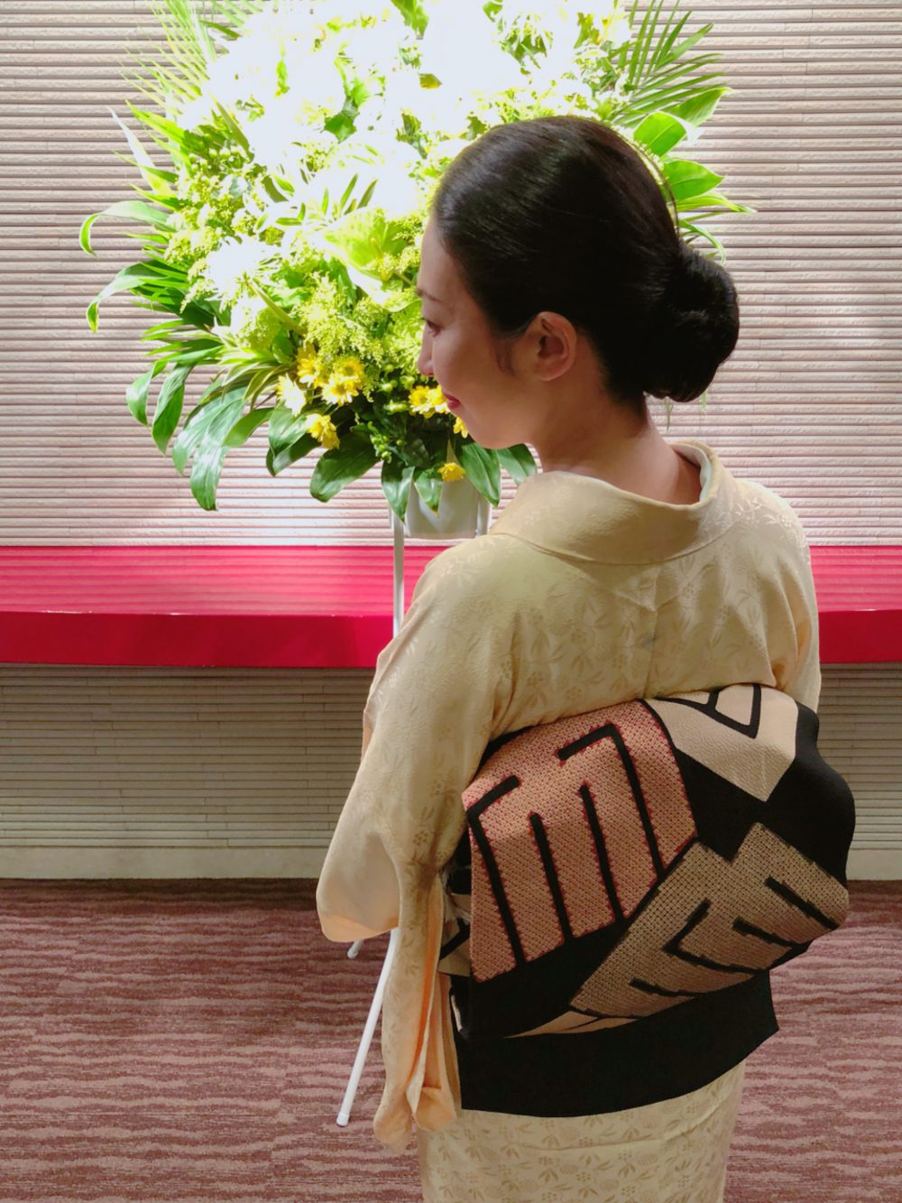所属する長唄杵弥会のお浚い会でした。単衣の無地に源氏香の帯です。袷の方も、単衣の方も、もう絽の帯や、絽の襟の方も。年々気温が上がり、昔からの決まりごと通りにいかない気候で、合わせ方に困っている方、たくさんいるだろうなと思います。