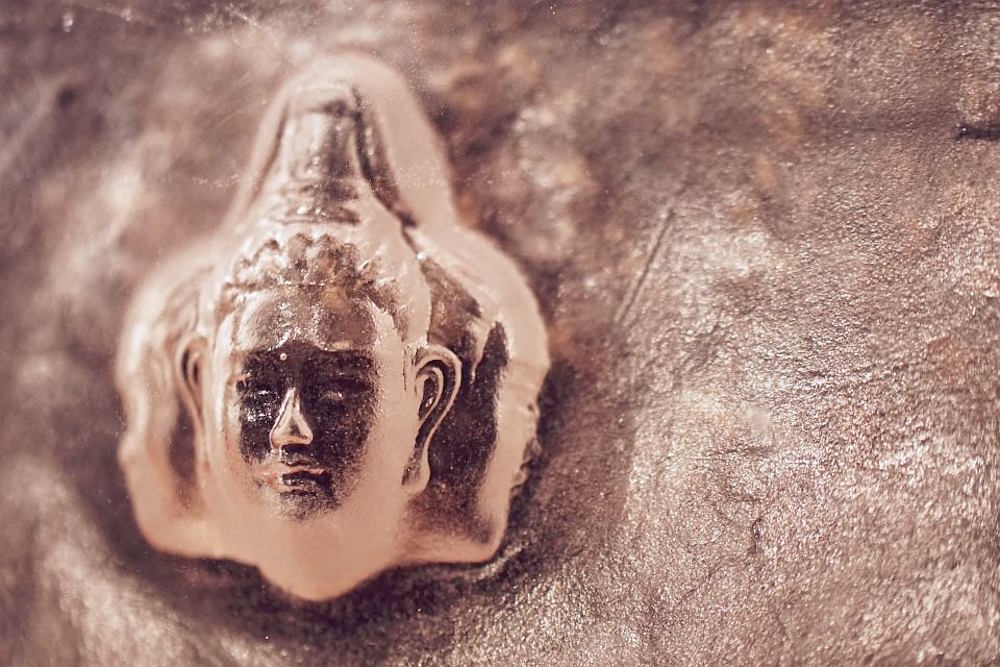 堀部さんの手がけたガラス仏像。ガラスが持っている、150色以上の色を駆使して、本物のフォルムや質感、陰影を再現することを試みている。