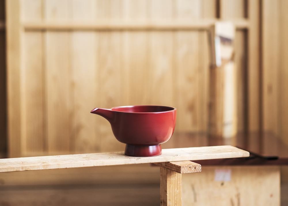 工藤さん一押しの「片口」。古くから、この地方で使われていた漆器で、お酒を注ぐのに使うほか、ドレッシングや盛器、花器としても使われるのだそう。