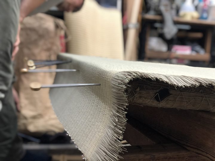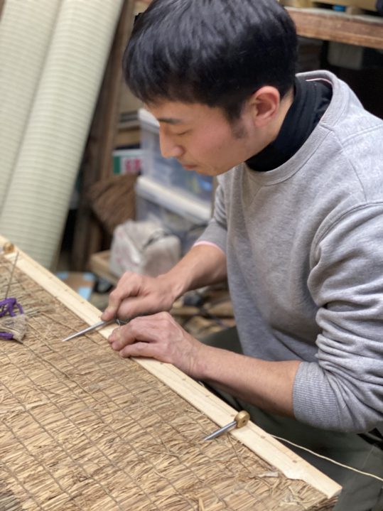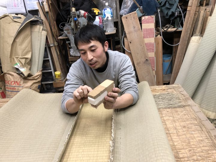 昨今の畳づくりは機械縫いが多いが、田中さんは、手縫いにこだわる。