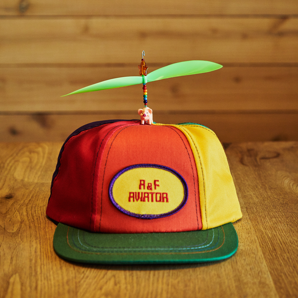 岡部さんの子育てヒットアイテムは〈A&F〉のキャップ。