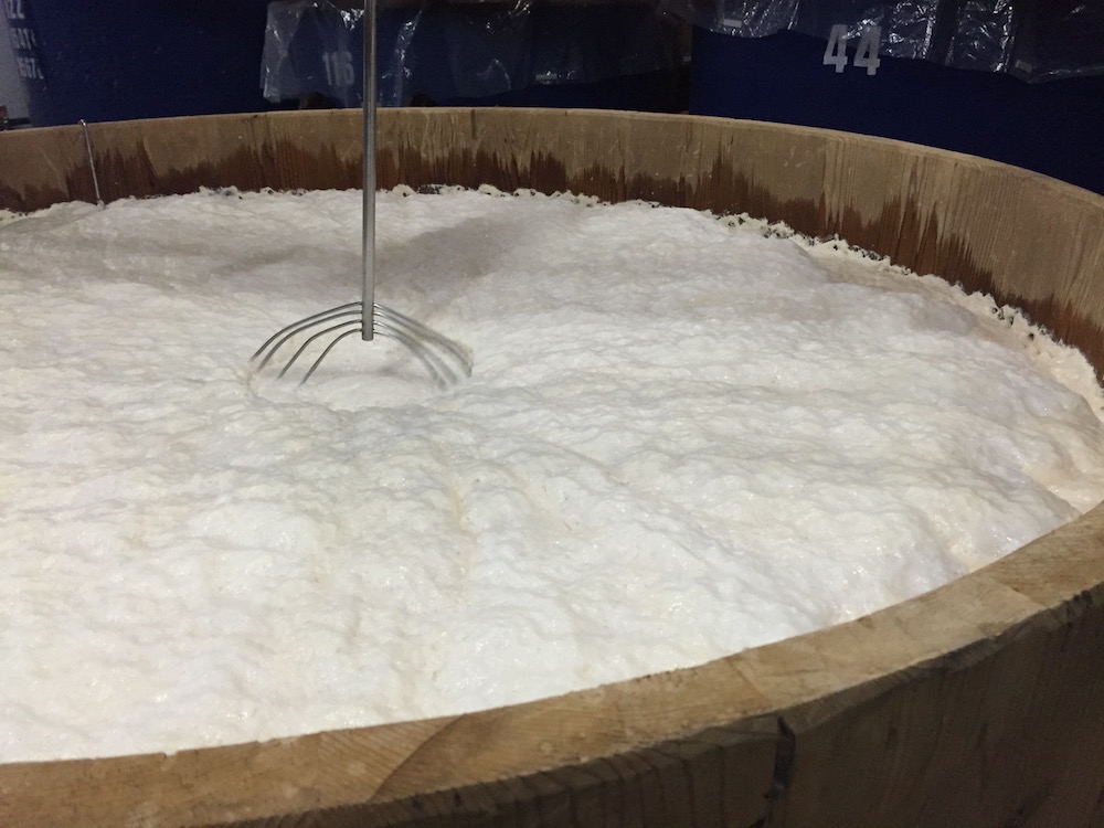 発酵の最盛期の様子。盛んに泡が立っている。