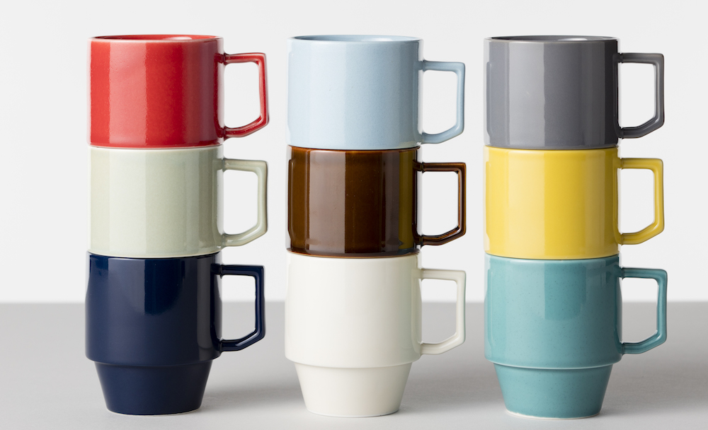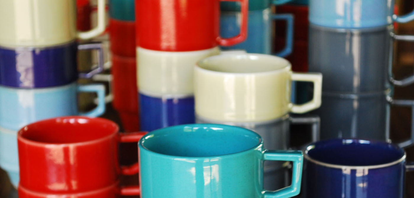 〈HASAMI〉シリーズのブロックマグ。「60年代のアメリカのレストランで使われていた大衆食器」をテーマにしたカラフルでポップ、機能的で丈夫なマグカップは好評を博した。