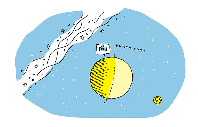 月は地球に対して常に同じ面、つまり表側しか見せておらず、月の裏側がどうなっているかは地球からでは分かりません。人工衛星「かぐや」は、月の裏側を写真に収めましたが、未だに人類は、月の裏側に足を踏み入れておらず、実際には誰も見ていないのです。では、そこには何が広がっているか。地球の光も届かない月の裏側には、太陽が沈んだ夜になると圧倒的なスケールでまばゆく天の川が現れます。このアクティビティは、月面観光の最大の見所となるでしょう。星空は、もちろん月の表側でも見ることはできますが、地球の明るさが天体観測の邪魔になると考えられています。