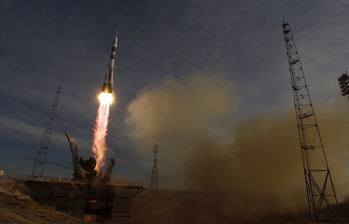 ロケットの打ち上げ場所となるのは、カザフスタン共和国のバイコヌール宇宙基地。発射台から2km離れた場所には展望台があり、見送りに来た人は、発射の瞬間をここから眺めることになります。