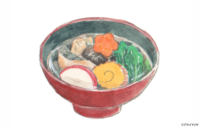 元日の朝、1年で最初の“一番だし”をひくことが楽しみです。その年、最初にひくだしが上手にひけたら、いい年になると決めていて、毎年、人生で一番素晴らしいだしをひこうと密かに決意してのぞみます。楽しみというより、自分の中の密かな願掛けですね。新しい年を迎えた部屋に広がるだしの香りも、ごちそうのひとつだと思います。私の出身地、長崎市のお雑煮は、海の幸、山の幸とふんだんな具材が特徴。わが家では、唐人菜、ブリ、海老、かしわ、紅白の板付け、手まり麩、伊達巻、丸餅に一番だしが定番でした。都内に住む今でも元旦にはこれを作ります。お椀も大きめで、祖父の代のものを譲り受けて使っています。具材ごとにすべて前日に下ごしらえをしておき、昆布も水につけておきます。そして元日の朝、だしをひく。来年も、今までの中で一番おいしいだしをひきたいと思っています。