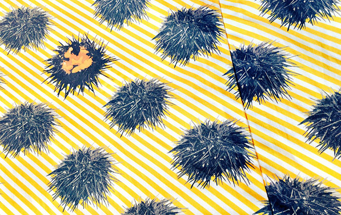 私物のウニ柄の着物。割れているウニが紛れているところも、遊び心があって気に入っているポイントなのだそう。