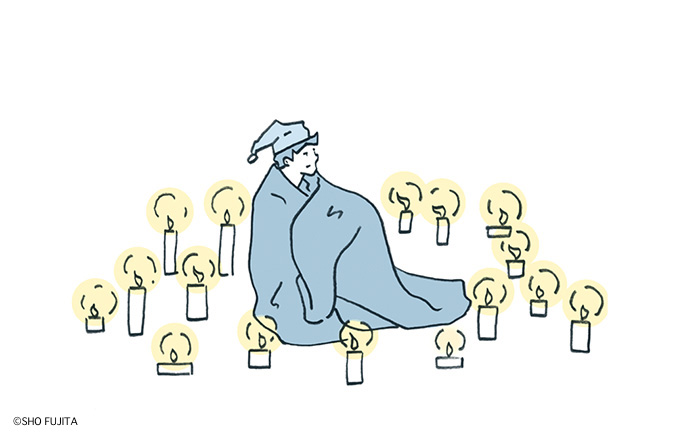 眠りの質は、起きた瞬間からベッドに入るまでに決まる、というのが僕の考え。毎朝、僕は日が昇る前に起きて、外でヨガをしながら朝陽を浴びて、脳と体を起こします。人間というのは、午前中は脳の集中力が最も高まる構造なので、執筆などのクリエイティブワークをして、午後にミーティングを入れたり、体を動かすようにしています。実は、午後の運動こそが、睡眠の質を高めてくれるのです。日沈後は、体と脳を休ませるために、部屋の電気は点けずに、キャンドルだけで過ごします。寝るまでは本を読んだり、映画を観たりしますが、20時以降は脳が覚醒してしまうので控えます。ベッドに入るタイミングで、お気に入りのアロマを焚きます。太陽とシンクロするように、自然の摂理に合わせて早寝早起きを心がけることが、快眠、そして健康につながっていますね。