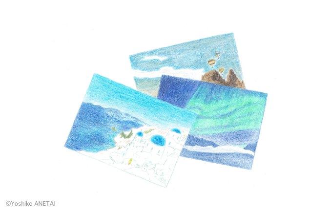 旅先ではポストカードをよく買います。新しいものも好きですが、蚤の市で古いポストカードを見つけると、つい買ってしまいます。今では見られなくなった景色と出会えるのが魅力ですかね。時にはインドで買ったのにアメリカの古い景色だった、なんてこともありますけど、そういうのも楽しみのひとつ。他には、デザインの可愛い包装紙や、地域の文化に根付いた柄物の布雑貨も好きです。旧東ドイツ時代の包装紙は大量に買ってしまったし、トルコやイランなどのシルクロードで栄えた街に行くと、その地域ならではの可愛い布雑貨に出会えるんです。ポーチやハンカチや靴下などは、ちょっとしたお土産にもいいですよね。