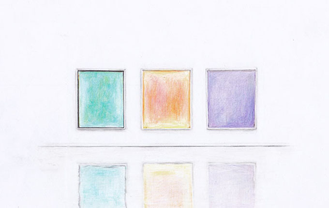 3.11で被災にあった地域の土中にフィルムを埋めて、放射能で感光させたらあの色が出てきたという写真です。資生堂ギャラリーで見た時に惹かれてしまい、自分の家を建てるタイミングだったこともあり、思い切って買ってしまいました。とても美しい色ですし、作品性もすごくいいなと思って。私の家は全部無彩色なんです。そこにアートで変化をつけようかなと思ったんです。置き場所に関しては、そこだけあえてテクスチャのある壁にしたり、電気のスイッチの位置がかぶらないようにしたりと、家を設計しながら決めました。もともと実家には、父が旅先で手に入れてきたいろいろな絵が飾ってあったんです。子供部屋にあった絵が抽象画で、「一体何だろう、木かな?」と考えたりして、そういう感覚が小さい時から身近にあったのがすごく良かったんですね。だから私の子供にも同じような体験をしてもらいたくて。今は子供と観察しながら、「ここら辺は光って見えるよ」「ここは黄色だよね」「いや、オレンジだ」とか二人で言い合ったりしてます。べたべた触られて嫌だなってのもあるんですけど、それは置いておいて(笑)。