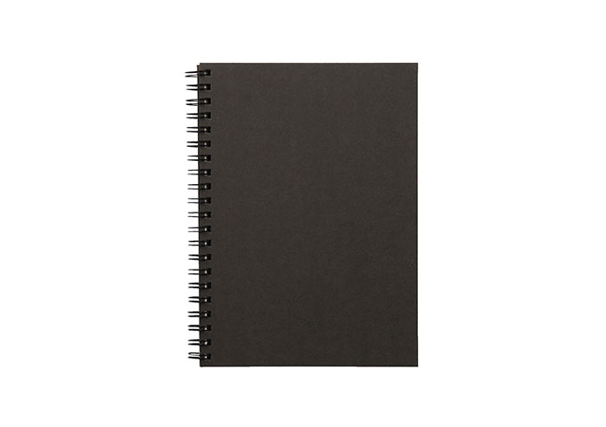 「再生紙ダブルリングノート」無印良品/360度折り返して使えるダブルリング。上下左右、どちらからでも使えるノート。/サイズ:B6/枚数:80枚/仕様:無地/色:ダークグレー/綴じ方:ダブルリング