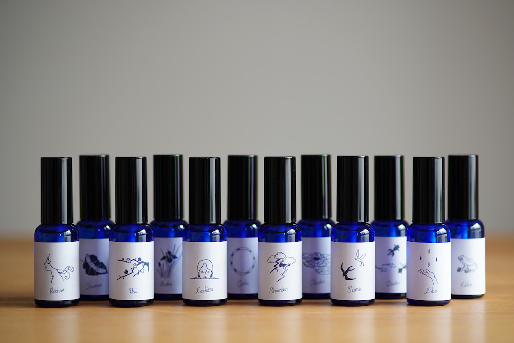 香りを制作する際には、季節の情景やサウンド、温度、湿度、そして湧き上がる自分の気持ちを素直に感じてもらえるようなブレンドになるよう心がけました。また、植物や樹木から抽出した天然100%の精油のみを使うこと、精油のブレンドはできるだけ4、5種類までのシンプルな構造にすること、各節気に必ず1種類は日本に自生する植物や樹木から作られた和精油を使うことの3つを意識しました。