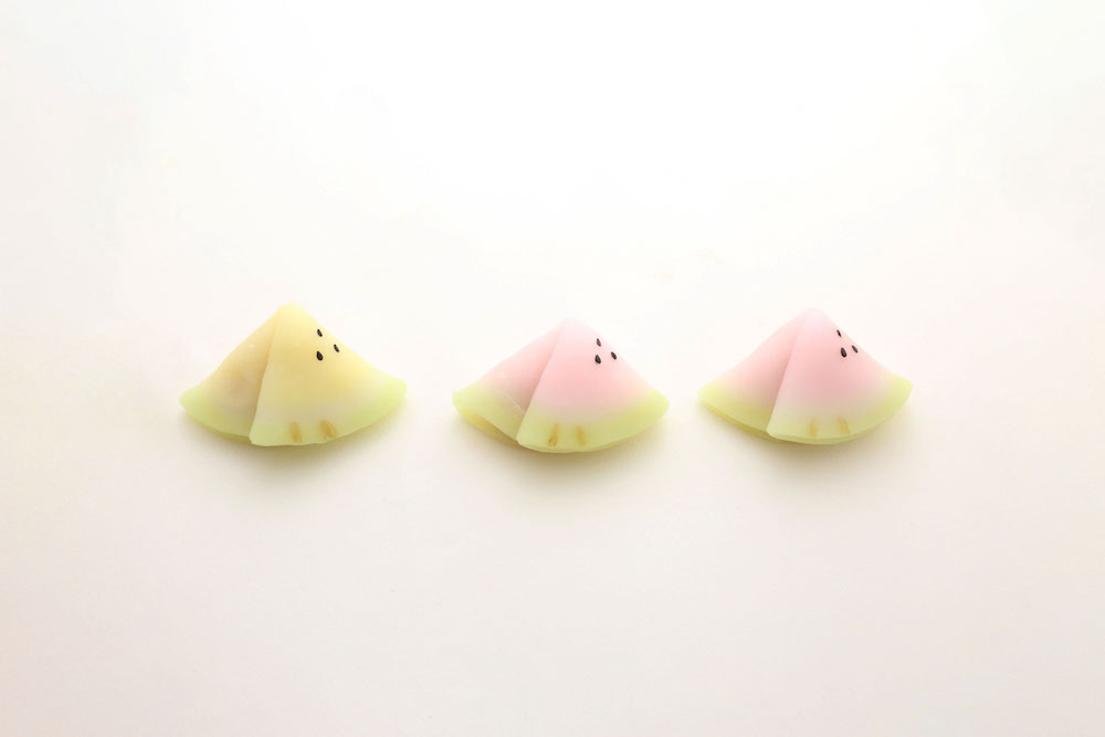 今年で5年目になりますが、季節のお菓子として定番化したものもあります。例えば、大暑(7月23日頃)をテーマとして制作した「ひと涼み」という名のお菓子。和菓子で伝統的なイチョウ型をスイカに見立てたもので、こちらは夏の定番になりました。