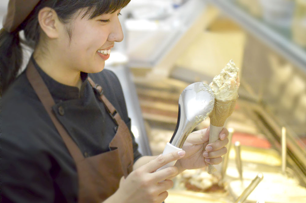 堀川さんの長女・宙さん。日本にジェラートを持ち込んだ巨匠・植木耕太氏に弟子入り後、本場イタリアで修行を積み、最年少で「ジェラートマエストロ」の称号を取得。