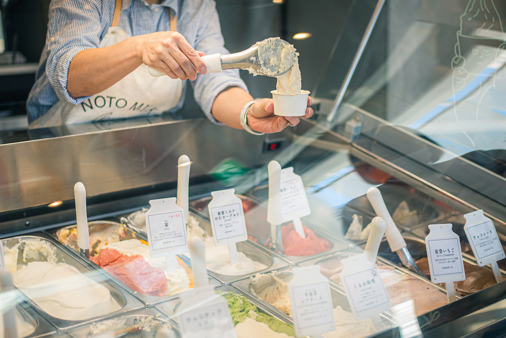 順調に販路は広がり、2018年4月には直営店をオープン。「以前から〈能登ミルク〉のおいしさを味わってもらうカフェは構想にありました。イタリアでジェラート作りを学び帰国した娘がカフェを出したいということで実現。娘の夢が私の夢でもあるので、目的がはっきりして目標ができ、一気に動き出しました」