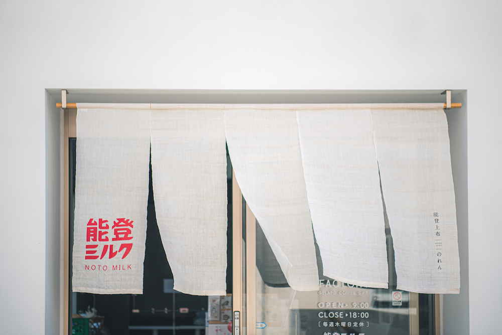 入り口にかかっている暖簾は、風合いが美しい「能登上布」で作られたもの。