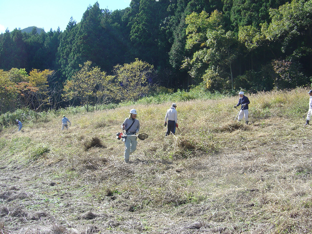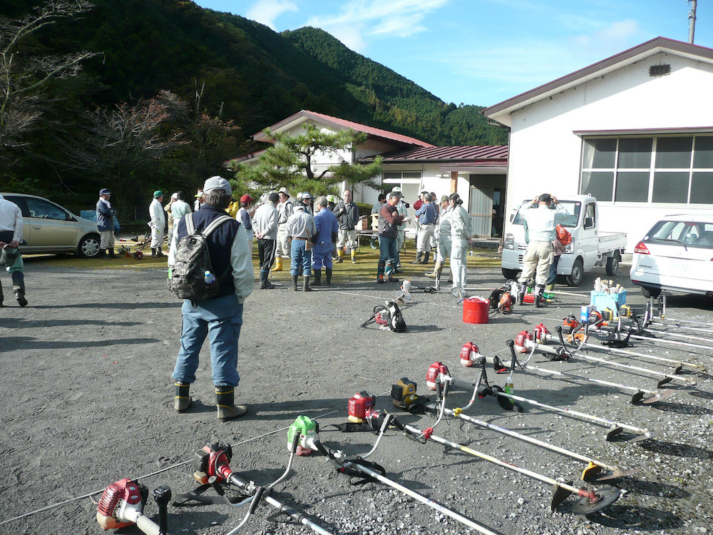 秋山地区は、イノシシやシカ、サルやハクビシンなどが多く生息する地域。関塚さん自身も2005年頃より鳥獣被害対策に励んできましたが、2010年から栃木県の鳥獣被害対策モデル地区として、東京農工大学や宇都宮大学、それから地域の方たちと連携し、さまざまな対策を行うように。たとえば、外部からボランティアを募って、地域の人々と一緒に草刈りをしたり、竹の伐採、山と畑の間にフェンスを設置するなどしてきました。