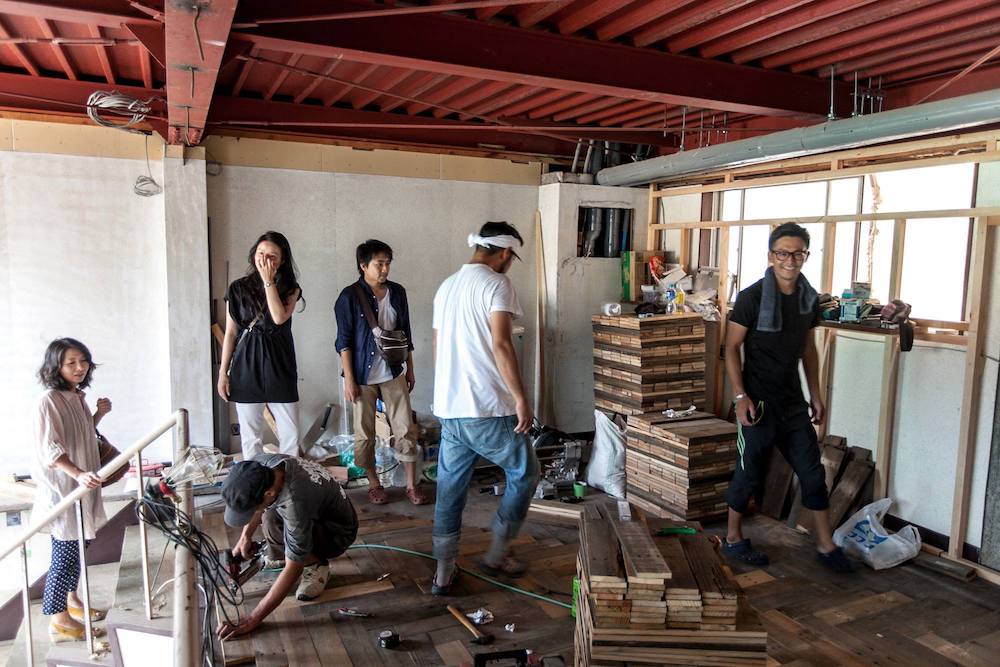 海外から帰国した塩満さんは、鎌倉にあるデザイナーズ旅館で働き始めた。しかし、当時塩満さんが求めていた、「お客さんとスタッフの垣根のないコミュニケーション」は叶わず、地元にゲストハウスをつくるため一念発起。街と人とをつなぐハブの役割を果たせるような場所をつくるために、バスセンターにも、飲食店にも、城下町へもアクセスしやすい物件を見つけ、リノベーションを開始します。工事の様子を逐一Facebookで発信したり、それを見た人が手伝いに駆けつけたり、オープン前からすでに話題に。当時はFacebookが流行り始めていた頃で、「SNSで周りを巻き込んでつくっていくというのは、センセーショナルだったのかもしれない」と塩満さん。そしていよいよ2013年、全国のファンが見守るなか、〈ruco〉はオープンしたのです。