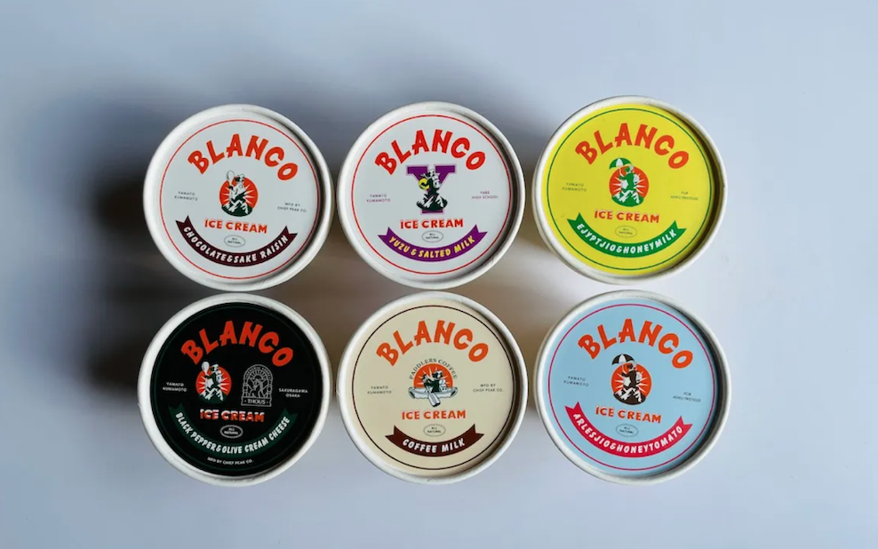 一度見たら忘れられない、ポップなパッケージに入ったおしゃれなアイスクリーム〈BLANCO ICE CREAM〉は、2021年5月、熊本県山都町出身の30代の男女3名によって創業されました。