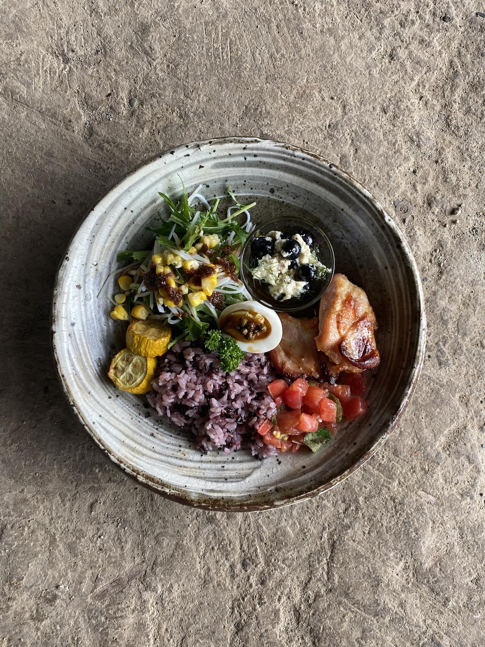 カフェで働いた経験がある妻の菜摘さんが調理を担当。地元農家さんから仕入れたものや、自分達の畑で採れた有機野菜をふんだんに使用した地産地消のランチプレートを提供しています。さらに、2023年には2階のロフト部分を活用して、植物に関する書物を中心に取り扱う小さな本屋〈BOTABOOKS〉も始めました。