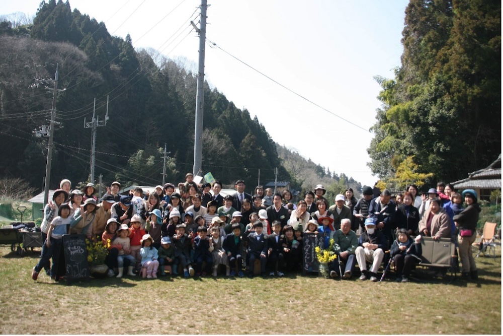 〈森のようちえん ウィズ・ナチュラ〉の卒園式に集まった親子、町の皆さん
