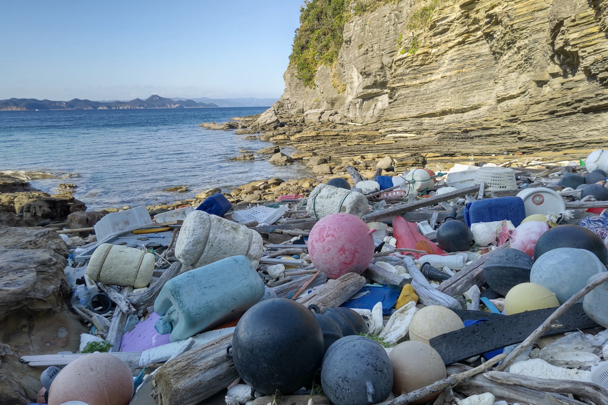 対馬が直面している課題は、人口減少による過疎化だけにとどまりません。今、深刻な問題となっているのが、海岸に大量に流れ着く海洋プラスチックごみです。その量は、年間およそ3〜4万立方メートルにも上ります。
