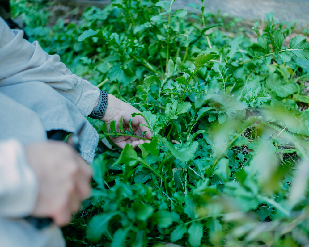 それから、庭栽培にも力を入れるようになったんです。マスタードやニンニクなどを育てたんですが、なかでも成功したのがルッコラ。今では自然に生えるようになって、それを採ってスタッフみんなで賄いに食べたりして。