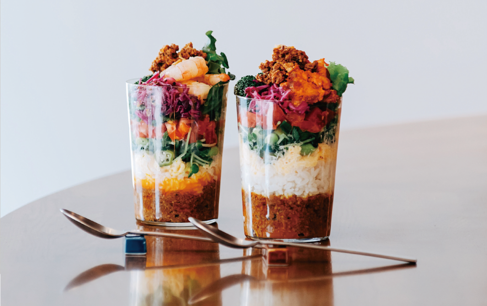 「その頃は、“インスタ映え”という言葉が登場したばかりで、パフェやスターバックスのフラペチーノのように、健康に気遣う女性も食べたくなるような、可愛くて美味しいカレーとはどんなものだろうと考えて、カップカレーという商品を開発しました。野菜やライス、カレールーが層になっています」