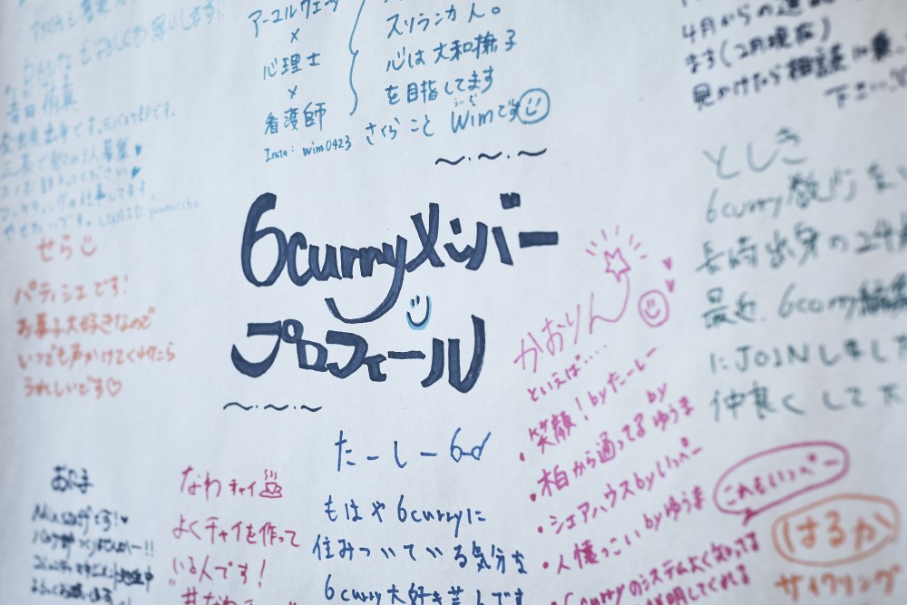 営業自粛期間中には、オンライン上で“部活”が行われたり、メンバー間で〈6curry〉を応援するバトンが始まったりなど、メンバー起点の新しい取り組みが行われていました。営業が再開した現在は、恵比寿と渋谷の拠点の運営のほか、オンラインコミュニティ〈6curryROOM〉、メンバー専用ストアなど、オンラインとリアルの両方で様々な試みが行われています。