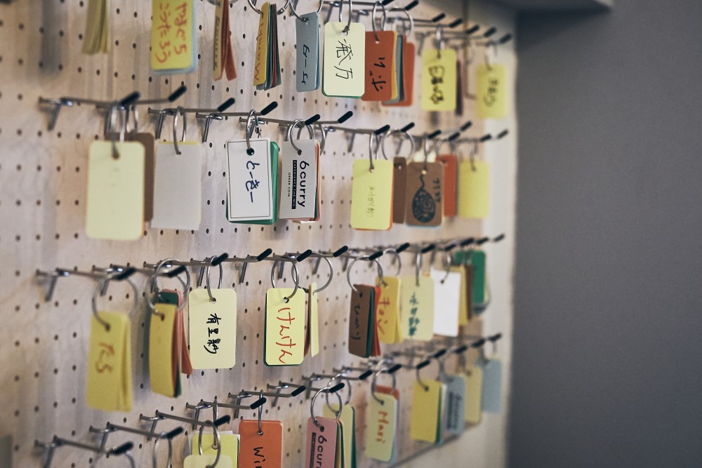 〈6curryKITCHEN〉店内で使用できる会員限定共通通貨「コイン」。メンバーそれぞれニックネームを書いて、一角に保管されている。