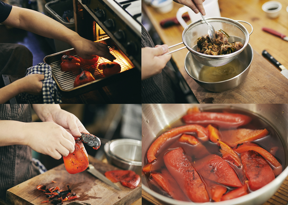 「ほうじ茶のイメージです。ほうじ茶は、焙煎をかけることで香ばしい香りを引き出しています。パプリカをグリル(家庭であれば魚焼きグリルでOK)で焼くことで、元々の甘い香りに香ばしさが加わり、よりおいしさが出るのではないか、という見立てです。ただ、やってみるまでは不安です……。今回は和食っぽい家庭料理を作るという狙いもあるので、どうしても醤油を使うことになります。つまり、バランスを取るのが難しいのですが、さて、どうなることやら」