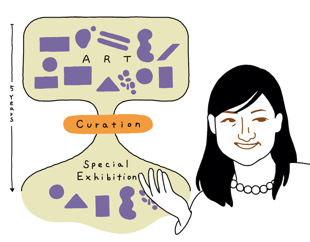 まず5年というのは、美術館にとってちょうど一つのプロジェクトがアイデアから実現するまでくらいの期間なんです。中規模以上の美術館であれば、常にだいたい5年先くらいまでを視野に入れて、特別展の企画を考えていると思います。そして、特別展というのは一般的に、美術館が持っているコレクションを軸に考えていきます。