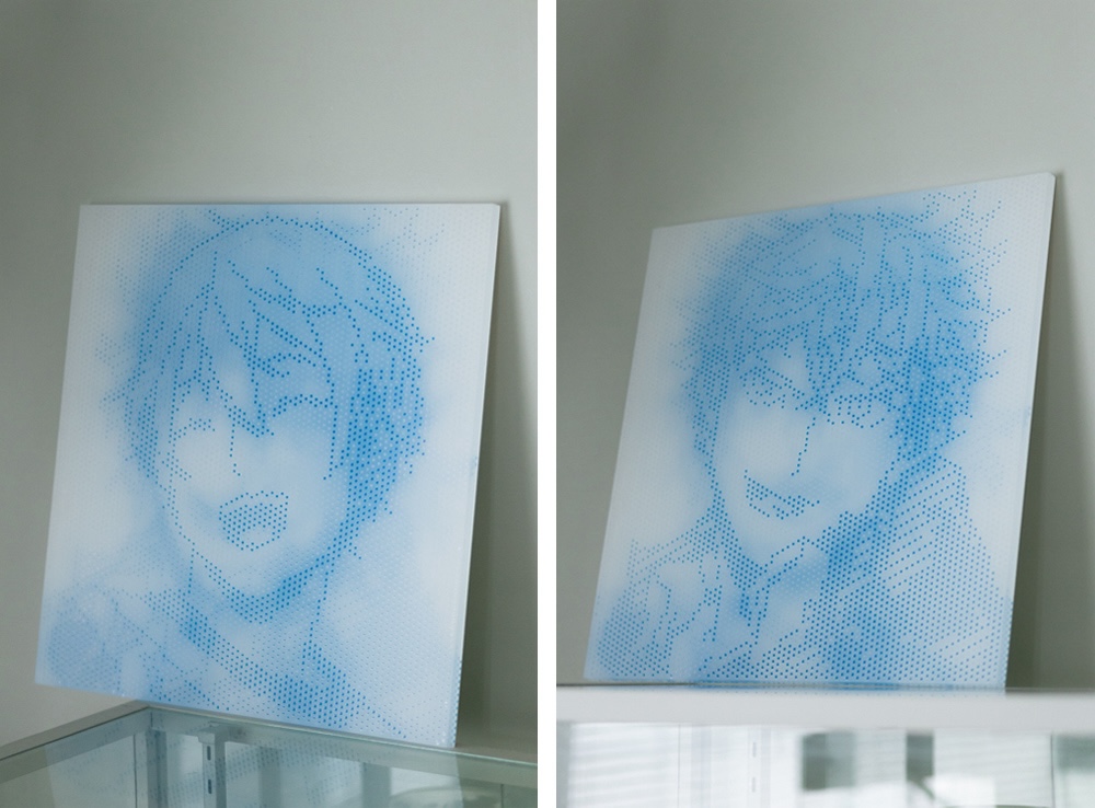 辻尾さんは、見る角度によって絵柄が変化する独自機構のアートワーク制作も行っている