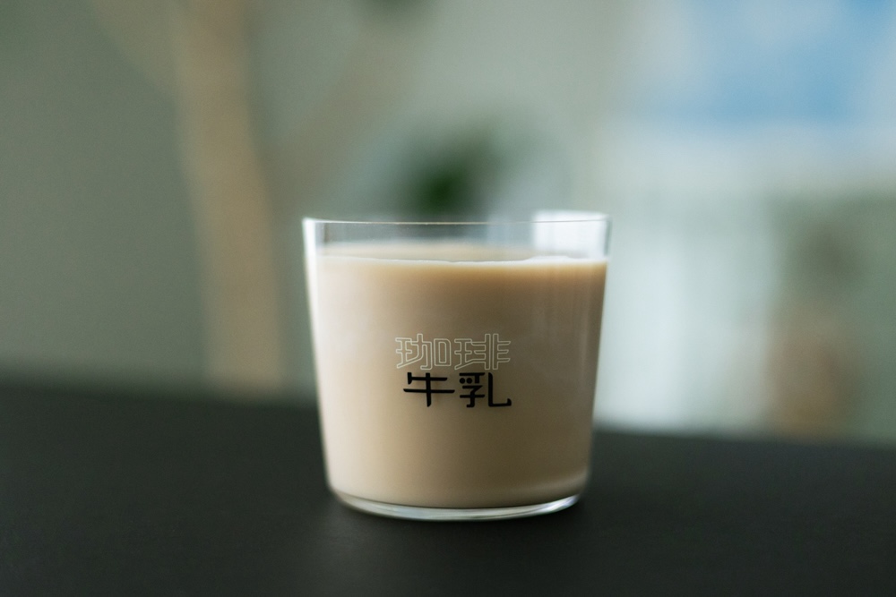 最初は、この見え方の変化をグラスのなかで再現できないかと考えていました。その過程で、牛乳を注ぐと文字が現れて、コーヒーを注いだら別の文字になるという仕組みを思いついて。「あ、これ珈琲牛乳にしたら、文字が両方浮きあがるじゃん」と、3種類の楽しみ方があることに気づいたんです。珈琲牛乳でしか成り立たない仕組みや意味合いが、副産物としてあとからついてきたんですよね。