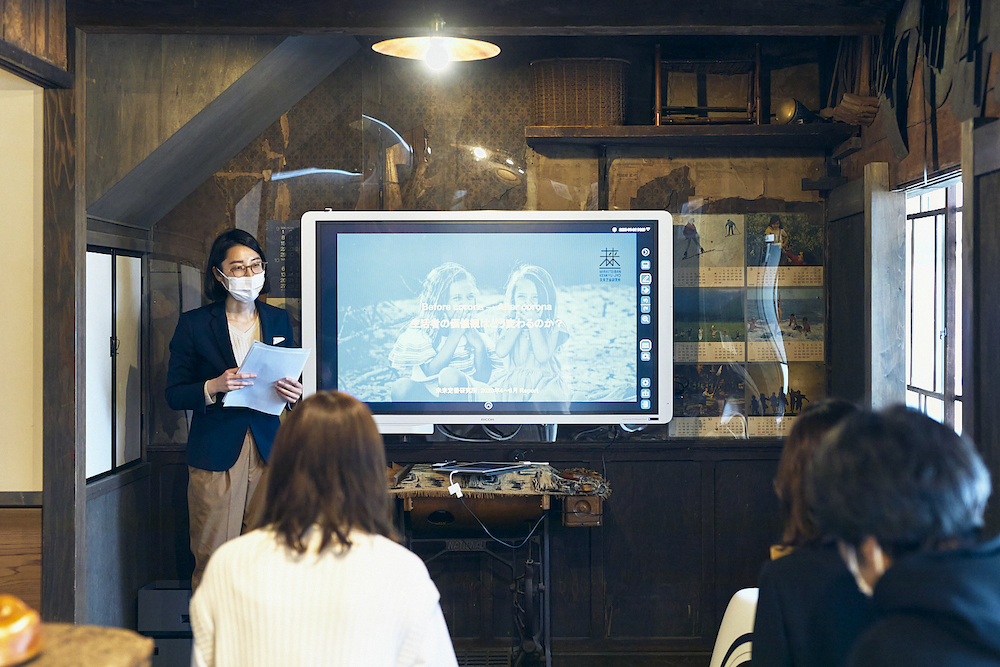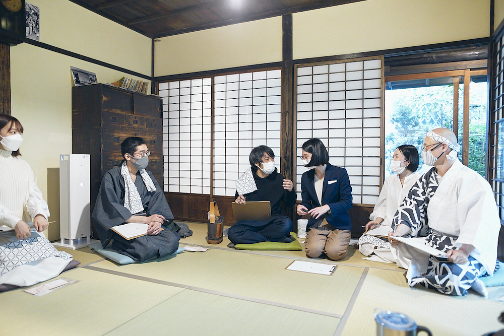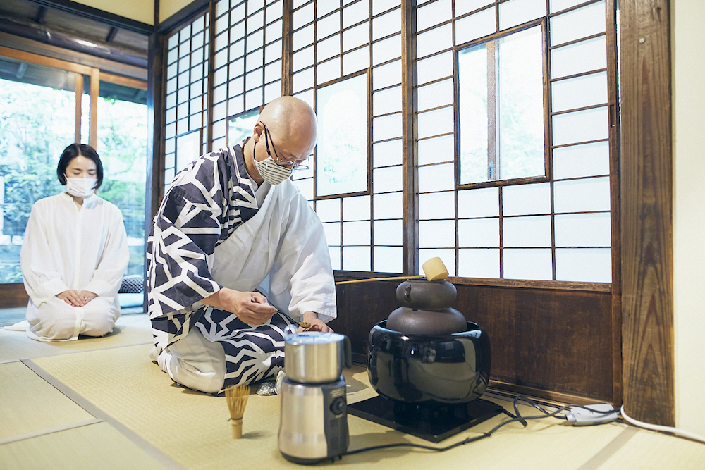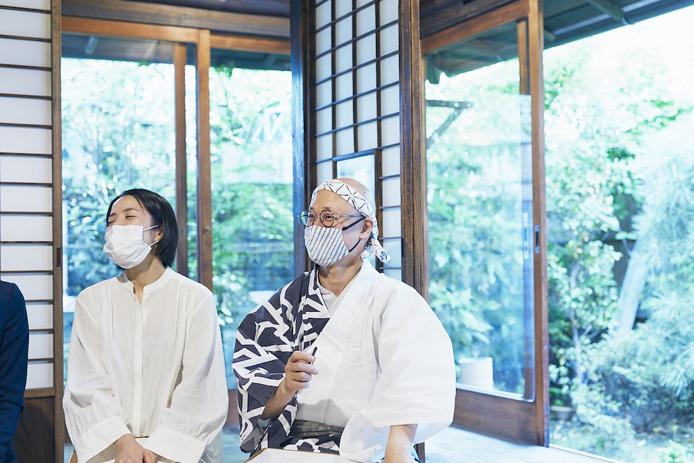 今回は、「築100年の古民家で、アフターコロナ時代の価値観を体験する」と題し、1回目同様、現代の「茶の湯」のあり方を探求し続けるアート集団「The TEA-ROOM」のメンバーである松村宗亮さんと、同じく「The TEA-ROOM」に所属する和菓子作家の坂本紫穗さんに企画していただきました。