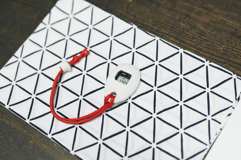 床の間に飾られたハッピは、ペルソナさんが夏祭りに愛用しているもの。現物を見ると、これを着て仲間たちと盛り上がっている様子がイメージできました。ペルソナさんは、アートや音楽が好きでアートコレクターでもあるので、ハッピの下には、「茶の湯」をテーマにした作品でも知られるNYの現代アーティスト、トム・サックスの「Casio Ceramic Pocket Watch」を。これはカシオの時計を焼き物で包んで固めたもので、ペルソナさんが普段から使っている愛用品でもあります。