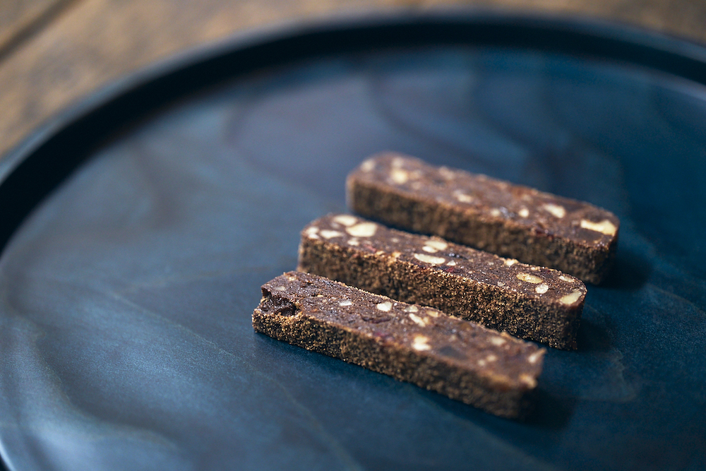 この日用意された茶菓子は「谷中エナジーバー」。自宅にある蔵を改装して作ったカフェを営んでいるペルソナさんの、お店で人気のメニューを想定しながら用意しました。「すはま」という大豆の粉と水飴とお砂糖でできた干菓子に、ココアとドライフルーツ、くるみ、プロテインを混ぜたもの。栄養価が高く機能的で、新しい活動に余念のないペルソナさんにぴったりのお菓子でした。